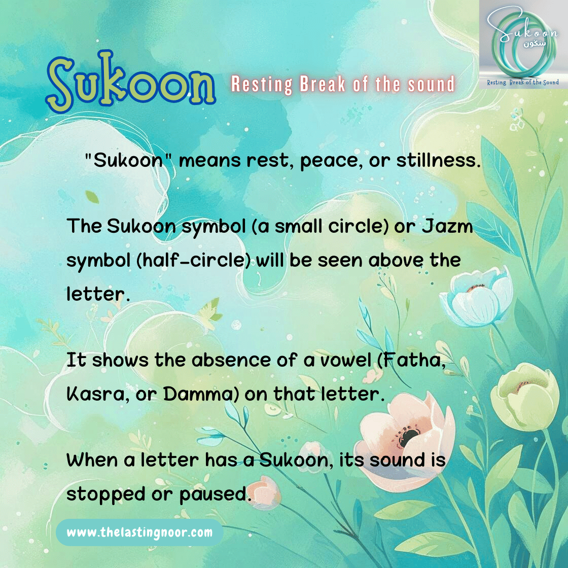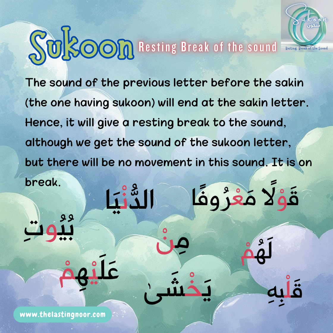 The Happy Tales of Sukoon comprises the definition and easy explanation of what sukoon is ( in the Arabic language). This will initiate our exploration of additional functional states of sukoon, including qalqalah, noon sakinah, and meem sakinah.